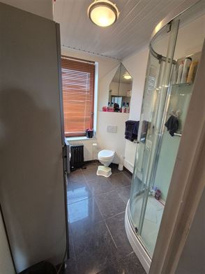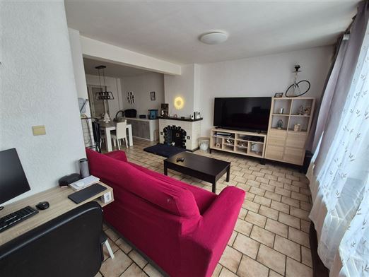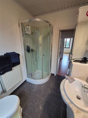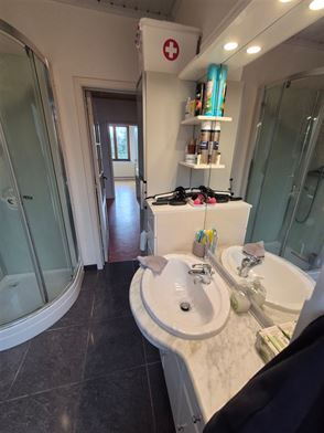 Le 1er étage comprend un palier avec wc, un living en "L" de 34m², une véranda de 21m², une cuisine équipée d'un double évier, d'une taque de cuisson au gaz, d'une hotte, d'un four, un frigo et emplacement lave-vaisselle.
