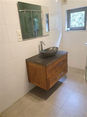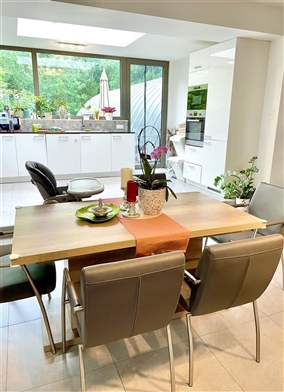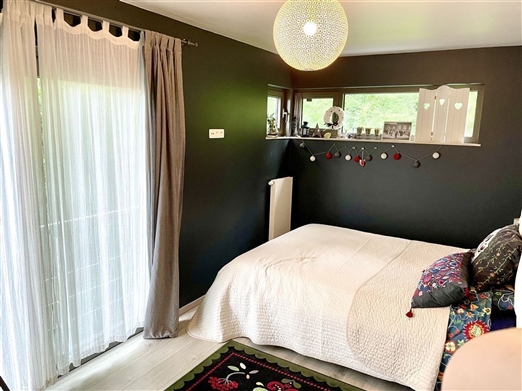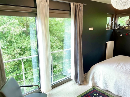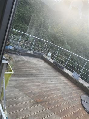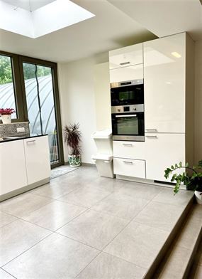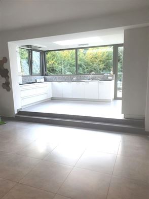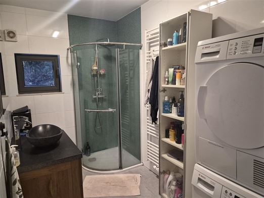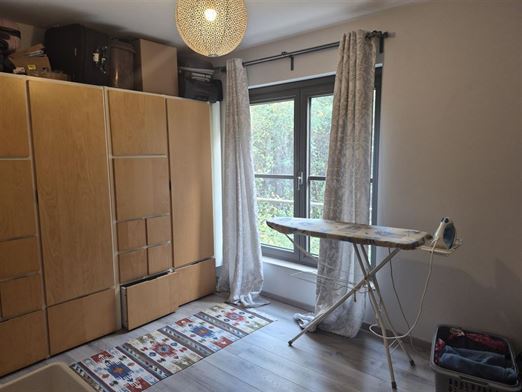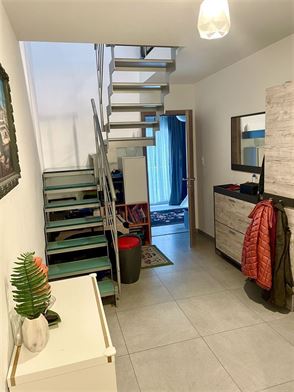 À l'étage, vous découvrirez un vaste living de 55 m², une cuisine ouverte sur le séjour entièrement équipée (four, micro-ondes, réfrigérateur, taque de cuisson, lave-vaisselle, évier et meubles de rangement), un WC séparé et une agréable terrasse.